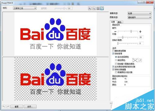 4、系統識別后會有一個對比圖預覽。如果識別的不夠好,可以微調右邊的細節等各項選項。當然原始圖片的質量直接影響圖片識別的好壞,所以如果原始圖足夠清晰,識別出來的效果也就相應較好。做好各項設置后,點擊確定就OK了!