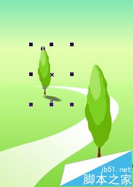 4、使用手繪工具繪制樹兒,復(fù)制并縮小,填充不同顏色,群組圖形,如圖所示。