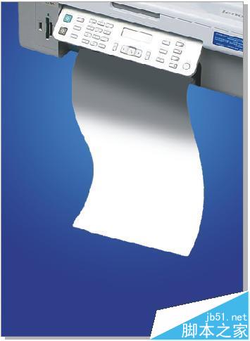 3、現在把打印機素材放在合適的位置,并按照上面的筆觸勾勒出一張帶有弧度紙的造型,作為打印的白邊;然后在紙張和打印機中間的圖層加上陰影效果,如圖所示。