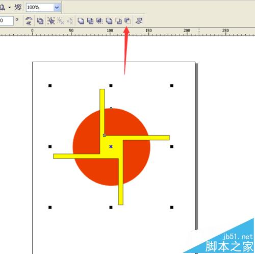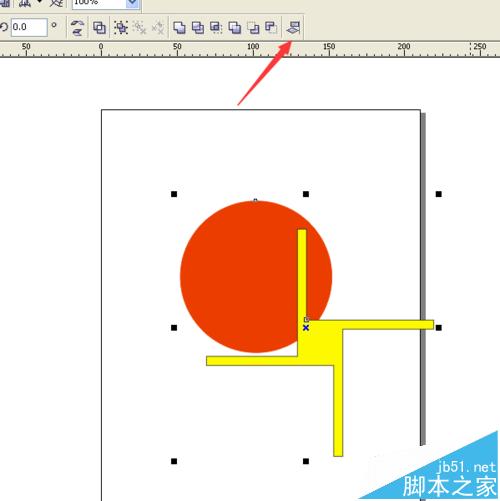 13、選擇”挑選工具“,再把兩個對象全部選擇上,再點擊上邊屬性欄的”后減前“按鍵。