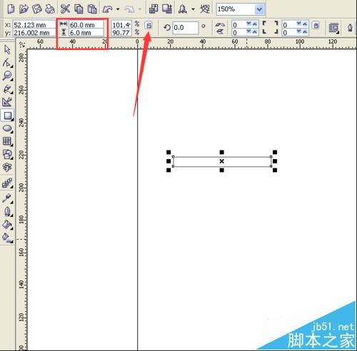 4、用矩形工具畫出一個長方形來,再點擊“不按比例縮放”按鈕,解除鎖定。接著,設置長方形的寬度為60mm,高度為6mm。