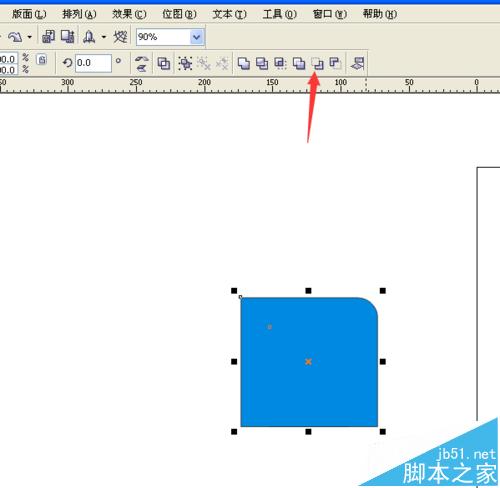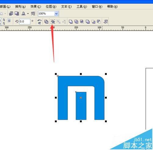 6、用挑選工具,把兩個圖形都選擇上,再點擊上邊屬性欄的”前減后“按鍵,就可以得到一個門字圖形來了。