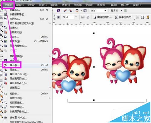 2、接著將這張白色底的,需要摳圖的圖片直接拖進(jìn)空白的文檔里,或者也可以通過“文件”下的“導(dǎo)入”來將圖片導(dǎo)入到空白的文檔里。