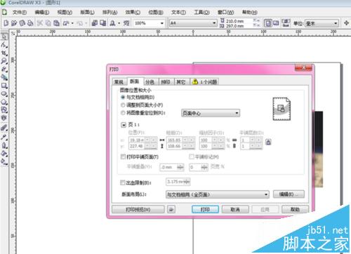 2、點擊【版面】,可以設置待打印的圖像位置、尺寸大小和頁面的出血程度,當然也可以設置有關打印平鋪頁面的各種選項。