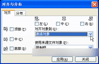(4)在"對齊對象到"下拉列表框中,可以選擇將選定的對象對齊到"激活的對象"、"頁面邊緣"、"頁面中心"、"網格"或"指定的點"上面。
