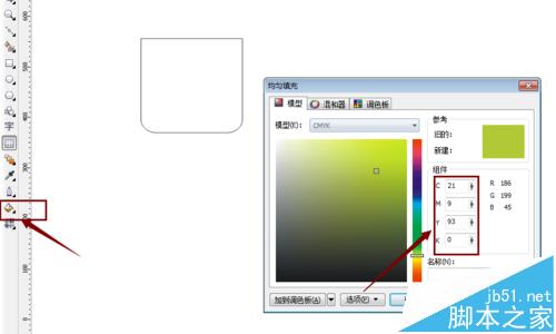 3、設(shè)置好顏色之后,我們就可以填充了,這樣我們就會(huì)看到邊角有一個(gè)黑色的邊框,我們點(diǎn)擊右邊的顏色區(qū)域,效果我們可以見(jiàn)下圖所示;