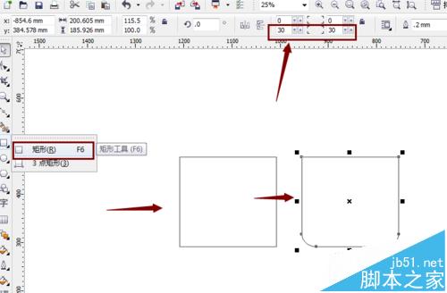 1、首先我們需要操作的就是,打開cdr軟件,打開之后我,我們找到矩形工具,畫一個(gè)矩形,然后我們需要將下面兩個(gè)角轉(zhuǎn)化為橢圓,效果我們見(jiàn)下圖所示;
