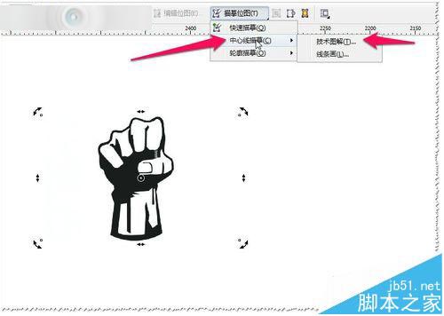 2、這次主要介紹中心線臨摹——CDR如何使用中心線臨摹的一些小技巧。如圖