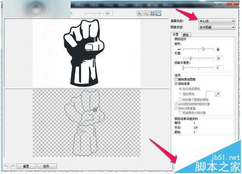 3、進入臨摹的對話框——選擇中心線,如果對默認的效果,滿意就點確定。如圖