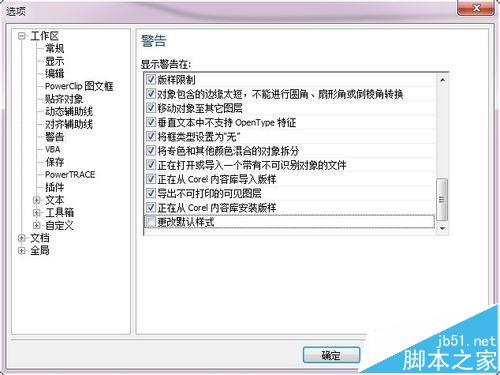 3、如果在第一次設置時勾選了“不再顯示”可以在 設置-警告 中找到 更改默認樣式 ,勾選即可顯示提示對話框