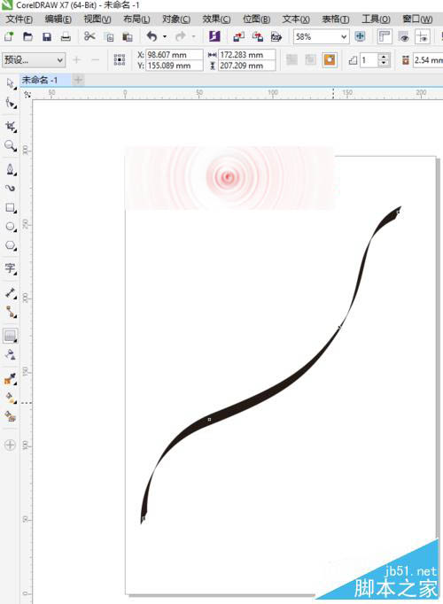 2、選擇工具箱中的選擇工具,選中繪制出來(lái)的曲線,講其調(diào)粗一點(diǎn),我們將輪廓寬度設(shè)置為10mm。