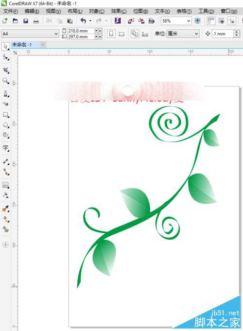 10、現(xiàn)在,我們將兩片葉子放回到一起。選擇這整個(gè)葉子,左鍵單擊右邊的顏色條填充綠色。(注意:這里是左鍵單擊綠色加上填充效果。)