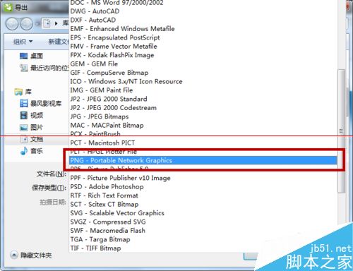 2、然后會出現一個對話框,點擊保存類型的下拉列表,找到png格式,再點擊確定。