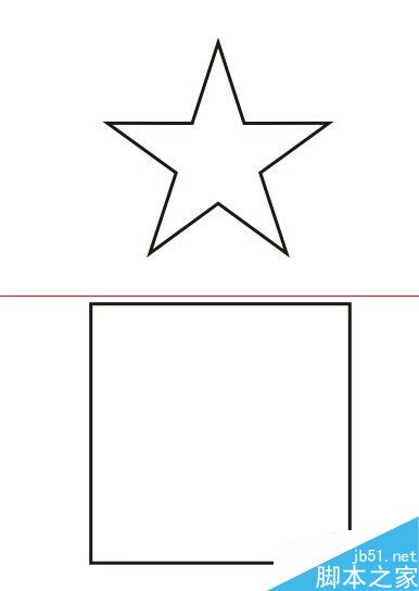 本文以正方形和星形為例,其他形狀也是一樣的做法。畫出一個正方形和五角星。