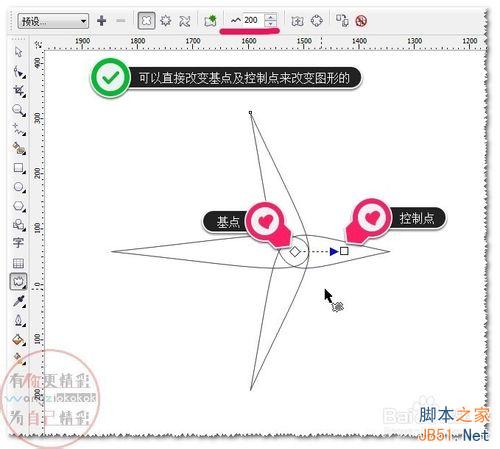 使用變形工具的圖形會(huì)有基點(diǎn)及控制點(diǎn)
