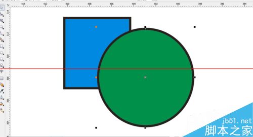 4、用選擇工具,將兩個圖形移動到一起,可以看到一個圓形會擋住矩形,這就是由圖層先后順序造成的。