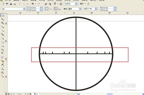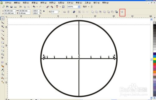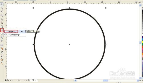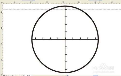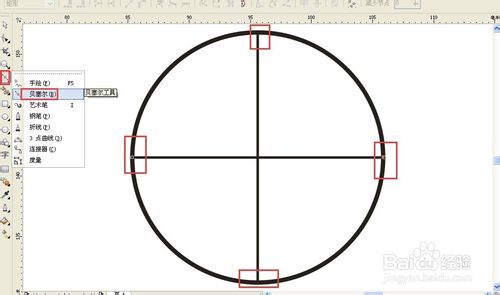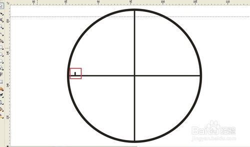5、畫中間的十字,實(shí)際是兩條直線。我用的是貝塞爾工具畫直線,如圖點(diǎn)擊圓線上的中點(diǎn)。當(dāng)鼠標(biāo)指向圓中點(diǎn)的時(shí)候會(huì)顯示節(jié)點(diǎn)而不是邊緣,這時(shí)候就可以用貝塞爾工具畫線了。