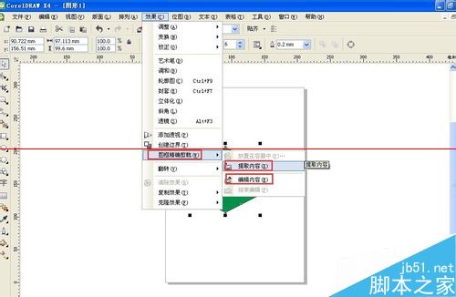 5、編輯好以后可以對剪裁的圖形進行修改,釋放,可以靈活的使用圖形。不會損壞圖形的完整度。如圖,效果-圖框精確剪裁-提取內容或編輯內容,或者右擊圖形-提取內容或編輯內容。