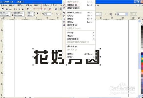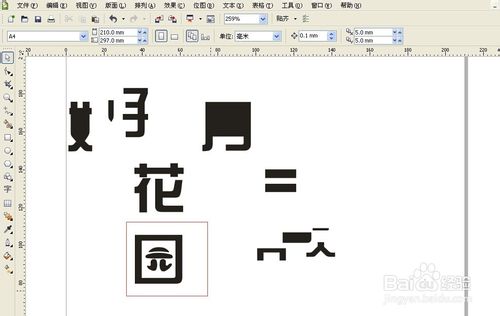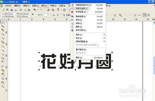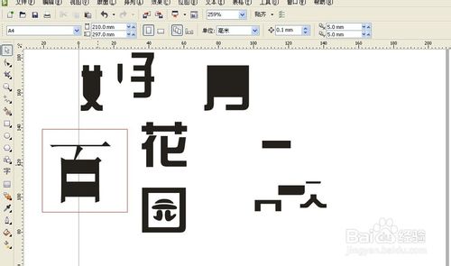 3、文字轉(zhuǎn)為曲線。為了和以后的某些部首結(jié)合。(轉(zhuǎn)曲:排列-轉(zhuǎn)曲,右擊文字-轉(zhuǎn)曲??旖萱I則Ctrl+q,在和別的快捷鍵不沖突前提下可以用)