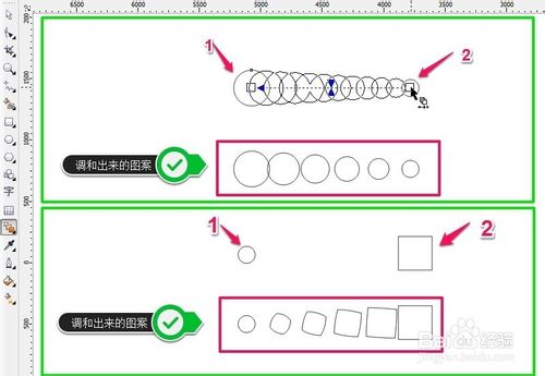 使用交互式調和工具必須有先有兩個矢量圖形(2個圖案都可以多個圖案群組)