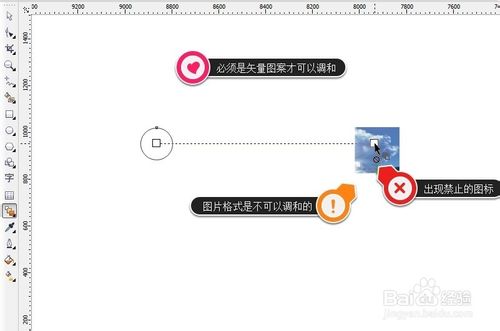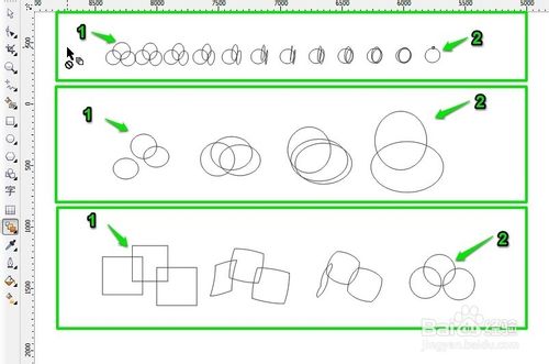 6、使用交互式調和工具必須有先有兩個矢量圖形(2個圖案都可以多個圖案群組)
