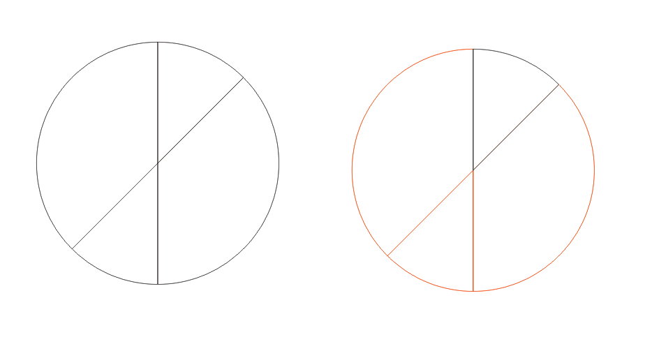 刪除兩條線得到得到下左圖,CTRL+K打散此圖。刪除紅線部分。