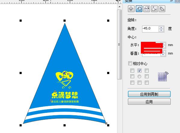 得到雨傘的一面。但是他是斜的。我們打字,放logo不方便。。那我們就旋轉22.7度。。在垂直鏡像得到下圖