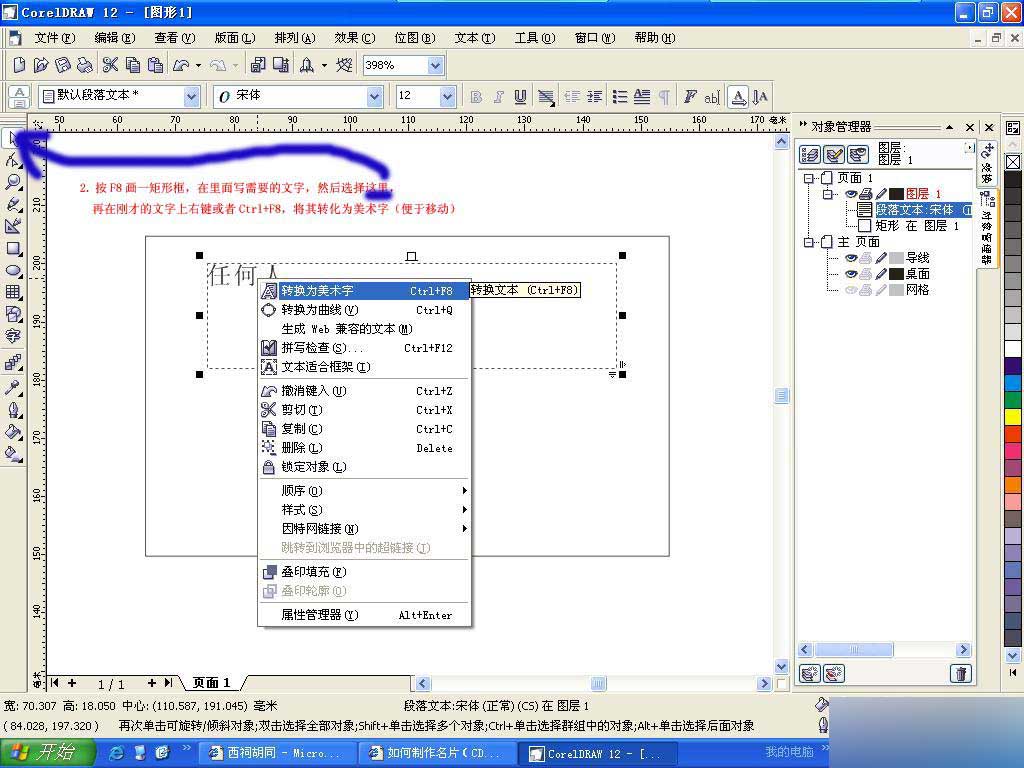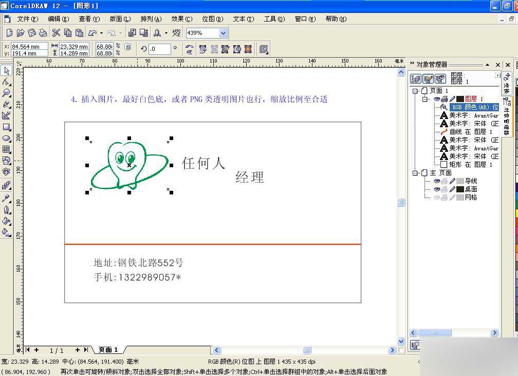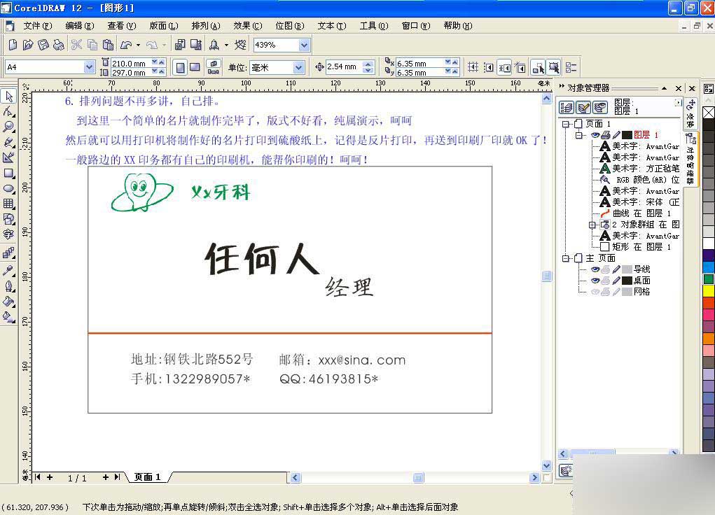 因為本人沒有經過什么專業的教育,所以創意不是很好,加上介紹的是商業性行為的名片,并且是在給大家介紹名片的制作方法而不是去炫耀制作水平,因此在名片版式的安排上過于土氣,希望大家在參照的過程中不要取笑為荷!
