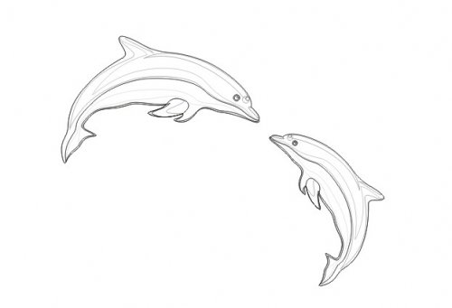 8、選擇工具箱中的貝塞爾工具繪制海豚的輪廓,有些部分需要做透明度處理,并填充顏色,可以根據自己的創意做出不一樣的海豚,效果圖如下。
