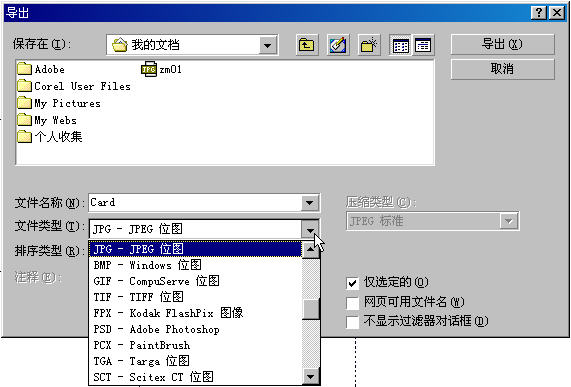 (2)在導出對話框中輸入導出文件名稱,并在文件類型下拉列表中選擇“JPG-JPEG位圖”,點出“導出”按鈕,如圖21.