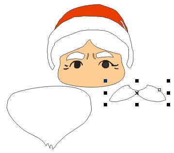 (2)分別繪出圣誕老人的臉龐、眉毛、眼睛和胡子,具體造型如圖02所示,同時將各個部位進行組合,并調整每個部位的層次,使之如圖03所示。