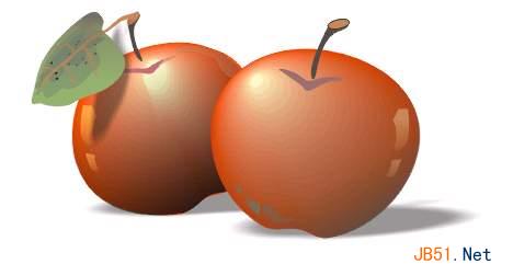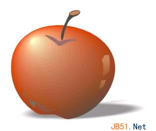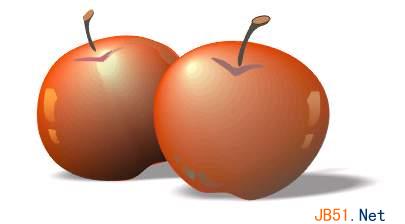 (5)制作另一個蘋果。選中剛才做好的蘋果并進行復制,將復制對象解散群組,選中蘋果的外輪廓圖形,用造形工具稍稍改變它的形狀,使這兩個蘋果略有不同;并將原來表面的陰影圖形的形狀也做相應的改變,因為這個蘋果位于剛才那個蘋果的后面,所以它表面的陰暗部分面積應該更大一些,拖動透明度工具手柄中間的滑塊滑向黑色方塊,以加重它的不透明效果;對于其他物體,你都要做一下調整,直至你滿意為止,最后也要在它的底部加上陰影效果,如圖:
