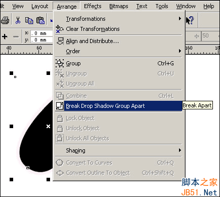 使用Arrange菜單中Break Apart命令,分離物件和陰影。