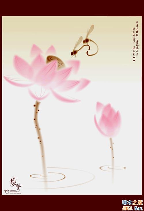 接下來制作花托和枝桿部分,花托在光線無法照射的地方,而在水中的部分應(yīng)該虛化,所以設(shè)置透明的時候要注意這些。如果考究的話,入水的一段枝桿應(yīng)當(dāng)傾斜30度左右,水面折射。