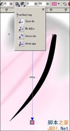 使用Interactive Drop Shadow Tool對荷花瓣輪廓進行編輯。如圖所示,陰影在物件中央,不要有變形和偏移。