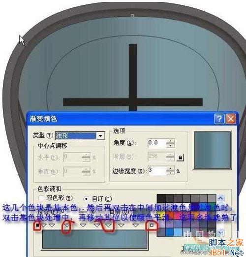 為兩邊的臉譜形填充漸變,注意顏色及方向;