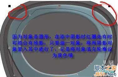 點右鍵編輯內容,給減后的對象填充顏色,加上陰影,注意陰影的方向和屬性(陰影的方向根據你自己心目中光線的方向確定,我這里假設光線是從右上角向左下角照射)有時為了更完美,我們可以用交互式透明工具對對象進行100%透明,只留下陰影部分。