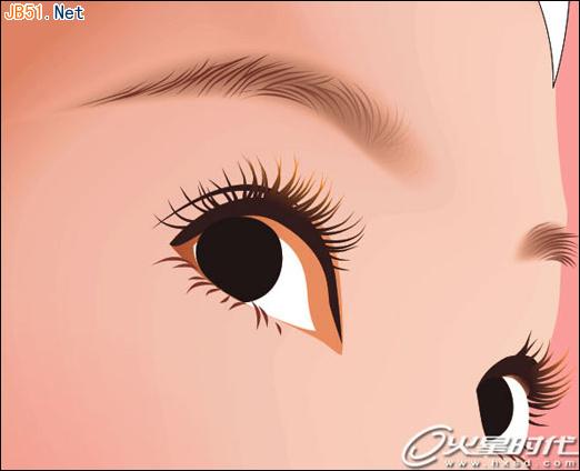 (6)用繪制眉毛的方法處理眼睫毛。因為這里使用的筆觸兩端形狀不一樣,所以要注意一個問題:繪制曲線時每條線都應要以靠近眼的那一方為起始點,所有曲線的起始與終止點要保持統一。