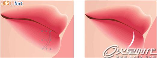 (3)使用"三點曲線工具"繪制新月形狀并填充白色,作為嘴唇上的高光。