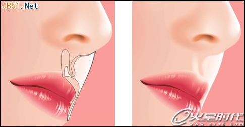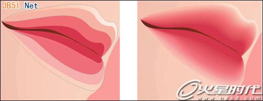 (1)繪制幾個封閉圖形作為嘴唇,填充一下漸變。