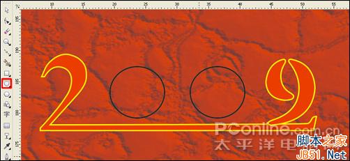 13、選擇工具箱中的橢圓形工具,按住Ctrl鍵在“2”字和“9”字之間拖曳出兩個(gè)大小相等的正圓形出來,如圖13所示。