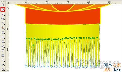 26、選擇工具箱中的形狀工具,按住Shift鍵在被使用過粗糙工具的位置間隔的選擇節(jié)點(diǎn),然后向上拖動(dòng),效果如圖26所示。