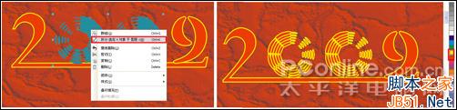 11、按住Shift鍵,復(fù)選數(shù)字“2”和“9”,鼠標(biāo)右鍵在數(shù)字上點(diǎn)擊,彈出右鍵菜單,選擇“轉(zhuǎn)換為曲線”(快捷鍵Ctrl+Q),將數(shù)字轉(zhuǎn)換為曲線,再左右單擊頁面右側(cè)默認(rèn)CMYK調(diào)色板上的紅色,填充數(shù)字為紅色,右鍵點(diǎn)擊調(diào)色板上的黃色,給數(shù)字輪廓填充為黃色,設(shè)置其輪廓大小為0.2mm,如圖11所示。