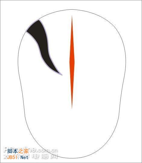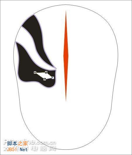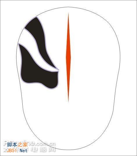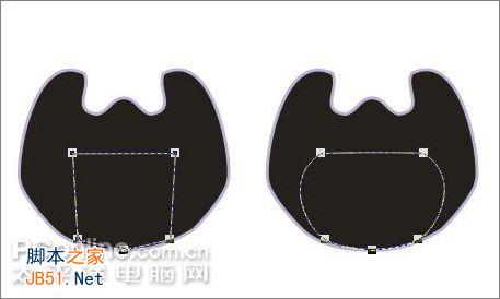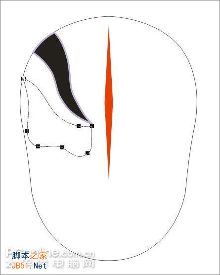 26、白色的鼻子必須放在黑色的背景上才能顯現(xiàn)出來,所以要在鼻子下畫一塊黑色的背景。還是先用貝塞爾工具畫一個(gè)四邊形,然后用形狀工具轉(zhuǎn)為曲線后調(diào)節(jié)為如下形狀,填充黑色。