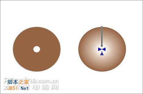 10、眼珠。先用橢圓工具畫出一大一小兩個(gè)橢圓,大的填褐色,小的填白色,均無輪廓。選擇交互式調(diào)和工具(快捷鍵為G),在兩個(gè)橢圓之間拉出一個(gè)調(diào)和,調(diào)和步數(shù)為20,形成有立體感的眼珠。