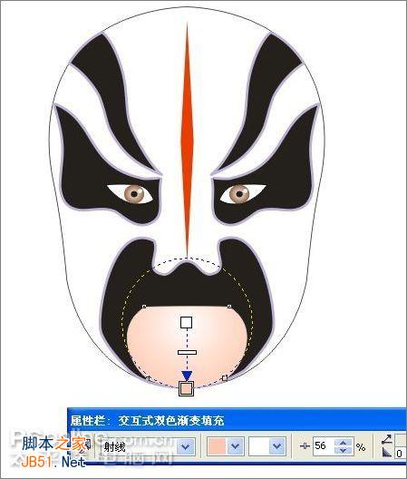 18、選擇交互式填充工具(快捷鍵為G),在下巴上拉出一個(gè)漸變填充,方式為射線,顏色為從白色到C: 3,M: 11,Y: 11。
