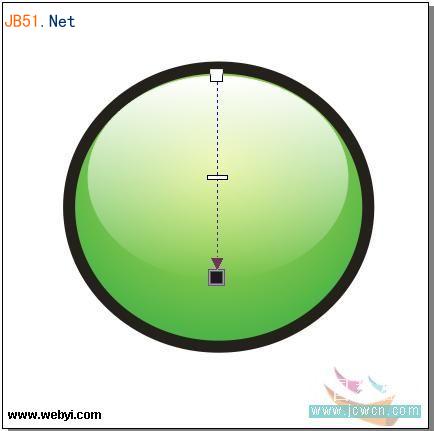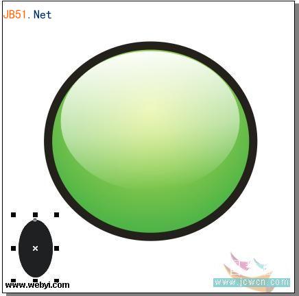 7、在工具箱中選擇“交互式透明工具”,從白色橢圓的頂部向下拖動鼠標,到橢圓底部的時候釋放鼠標,得到如圖8A所示的透明效果。