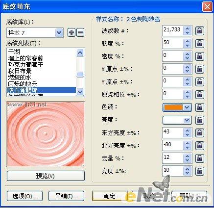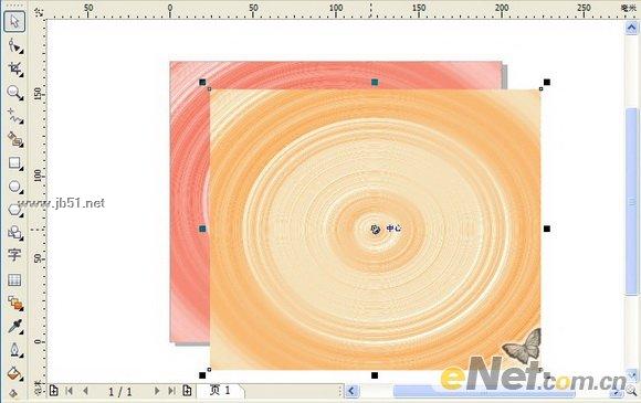 2.這是我們來雙擊工具箱中的矩形工具得到一個和頁面同樣大小的矩形這是我們來對矩形進行紋理和色彩的填充如圖1、圖2: