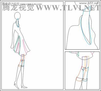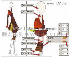 (7)接下來再為女孩兒下身衣服圖形上的褶皺圖形填充與下身圖形相同的紋理效果,然后使用