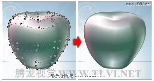 “交互式網格填充”工具,這時蘋果圖形上將出現帶有節點的網格線,選擇多余的節點,按下鍵將其刪除,從而使網格更加平滑且更利于之后的編輯操作,如圖4-112所示。